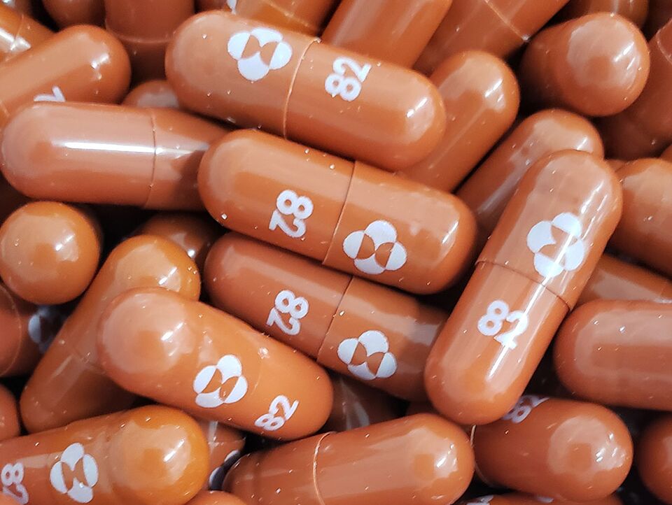 With partner Ridgeback. An antiviral pill developed by US drug maker Merck could halve the chances of dying or being hospitalised from COVID-19 but experts warn vaccines are still necessary. This undated image provided by Merck Co.